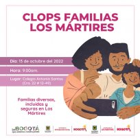 Las Familias de la Localidad de Los Mártires inciden a nivel local y distrital con acciones, por eso participaràn en el proximo CLOPS, Consejo Local de Política Social, un espacio para hablar del papel de nuestras familias en la sociedad, además recibiremos sus comentarios y recomendaciones en beneficio de las familias martirenses. ¡Te esperamos!. Recuerda familias diversas incluidas y seguras en Los Mártires
