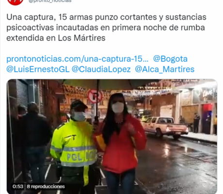 Una captura, 15 armas punzo cortantes y sustancias psicoactivas incautadas en primera noche de rumba extendida en Los Mártires