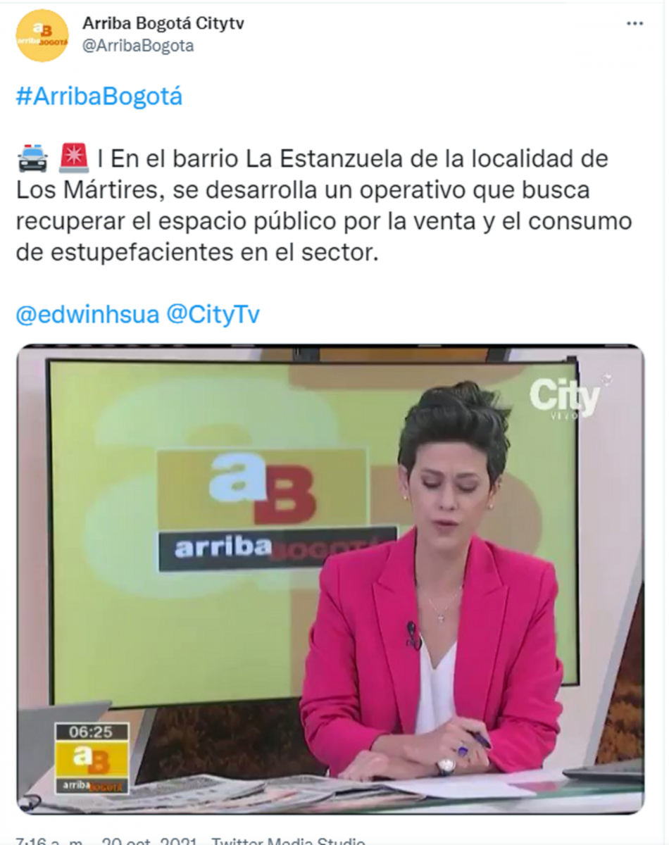 En el barrio La Estanzuela de la localidad de Los Mártires, se desarrolla un operativo que busca recuperar el espacio público por la venta y el consumo de estupefacientes en el sector.