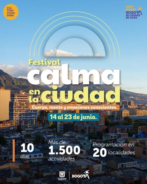 En su tercera edición, el Festival Calma en la Ciudad llega recargado de actividades y con una propuesta de descentralización territorial que cubrirá, además de las zonas urbanas, territorios rurales de Bogotá. Durante diez días la ciudadanía podrá disfrutar de más de 120 eventos gratuitos con música, actividades, talleres guiados y mucho más. Además, la programación contará con 19 recorridos ecológicos, más de 60 sesiones de bienestar integral en prácticas de yoga, feldenkrais, danza y meditación.