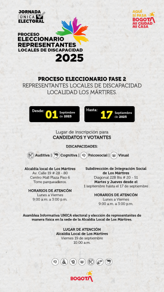 Bogotá se prepara para la Jornada Única Electoral Ciudadana, en la que los Consejos Locales de Discapacidad elegirán a sus representantes por los siete sectores de discapacidad para los próximos cuatro años.