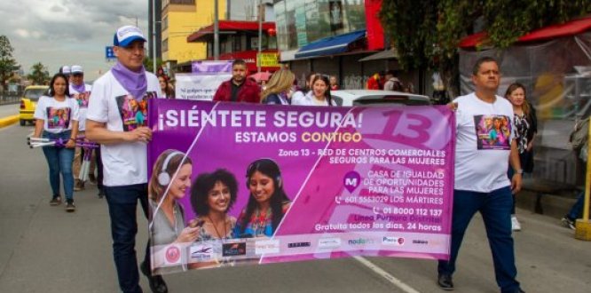 Once centros comerciales de la calle 13 en Los Mártires se unen para lanzar la nueva Red de Centros comerciales seguros para las Mujeres.