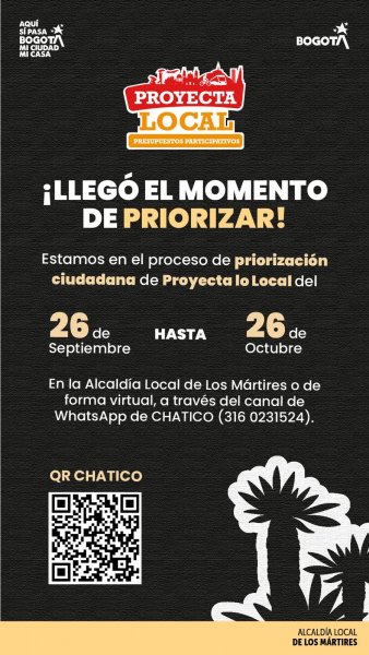 Durante este período, todas las personas podrán votar y decidir cuáles de estas ideas serán ejecutadas en el año 2026 con recursos del presupuesto de inversión de la localidad.